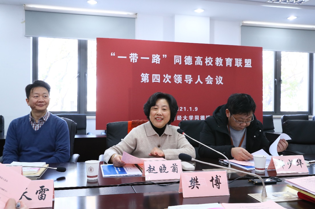 2021年1月9日下午,“一带一路”同德高校教育联盟第四次领导人会议在上海财经大学同德楼204会议室以线上线下相结合形式顺利召开。上海财经大学校长助理郑少华教授、上海财经大学上海国际金融中心研究院院长赵晓菊教授、上海财经大学金融学院常务副院长柳永明教授、厦门大学经济学院副院长朱孟楠教授(线上参会)、兰州大学经济学院副院长汪晓文教授(线上参会)、云南财经大学金融学院院长熊德平教授(线上参会)、上海政法学院人工智能法学院院长杨华教授、外交学院国际经济学院院长张翠珍副教授(线上参会)、华东政法大学商学院院长高汉教授、广西大学国际学院副院长霍林教授(线上参会)、山东大学经济学院副院长孙淑琴副教授(线上参会)、浙江大学经济学院副院长王义中教授、上海财经大学上海国际金融中心研究院副院长马文杰教授、上海交通大学国际与公共事务学院副院长樊博教授、上海财经大学国际文化交流学院党总支书记王玲老师、福州大学经济与管理学院财政金融系主任林炳华教授(线上参会)、复旦大学经济学院金融研究院副院长徐明东副教授、重庆大学经济与工商管理学院金融系副主任皮天雷副教授、上海交通大学安泰经济与管理学院金融专业硕士项目主任唐宗明副教授、上海高金金融研究院金融科技研究中心执行主任姜振兴老师、上海外国语大学国际金融贸易学院金融创新与发展研究中心执行主任李路副教授、华东师范大学经济与管理学部李明辉副教授(线上参会)、上海财经大学《上海财经大学学报》期刊编辑部主任王西民老师、上海财经大学《外国经济与管理》编辑部副主任王孜博士参加了本次会议。