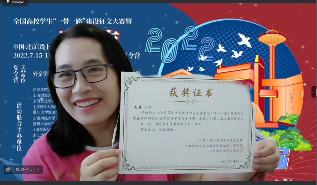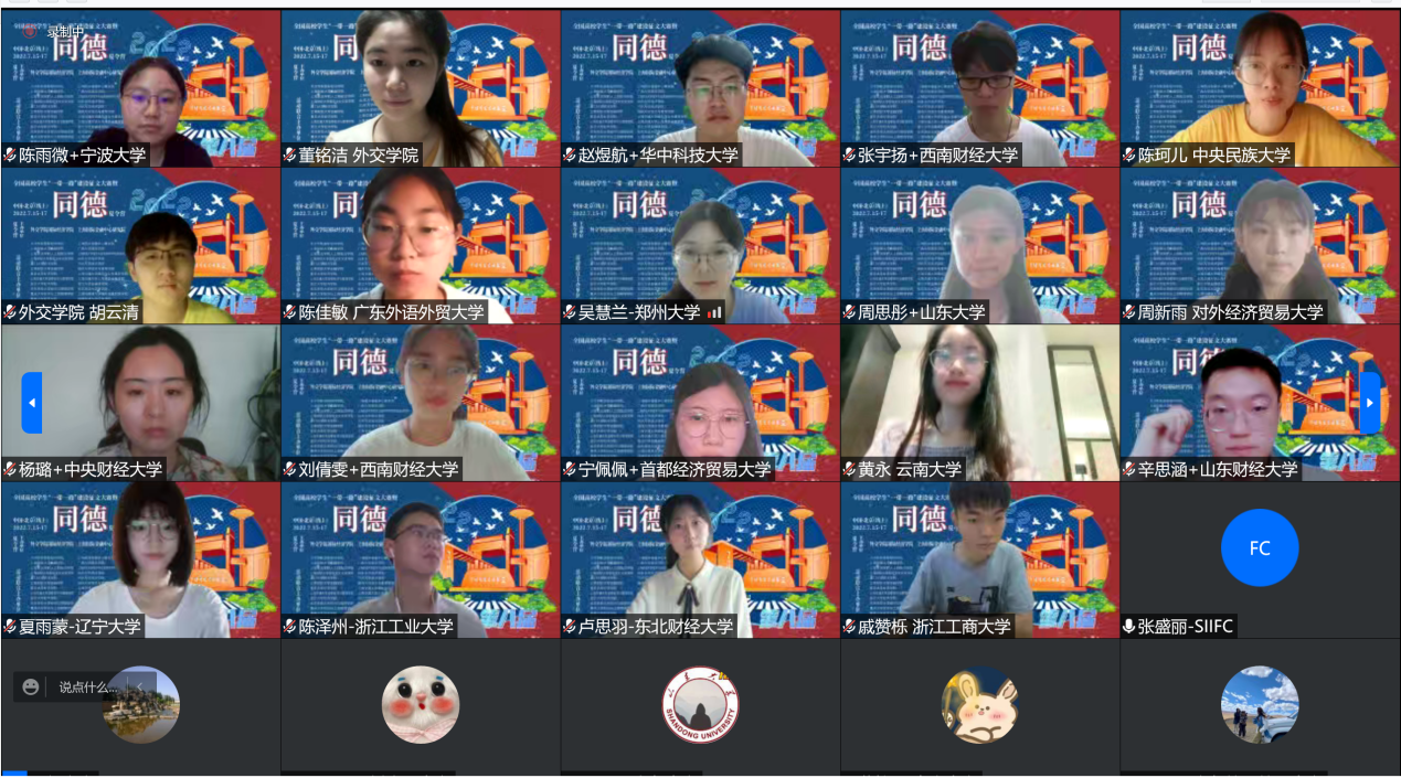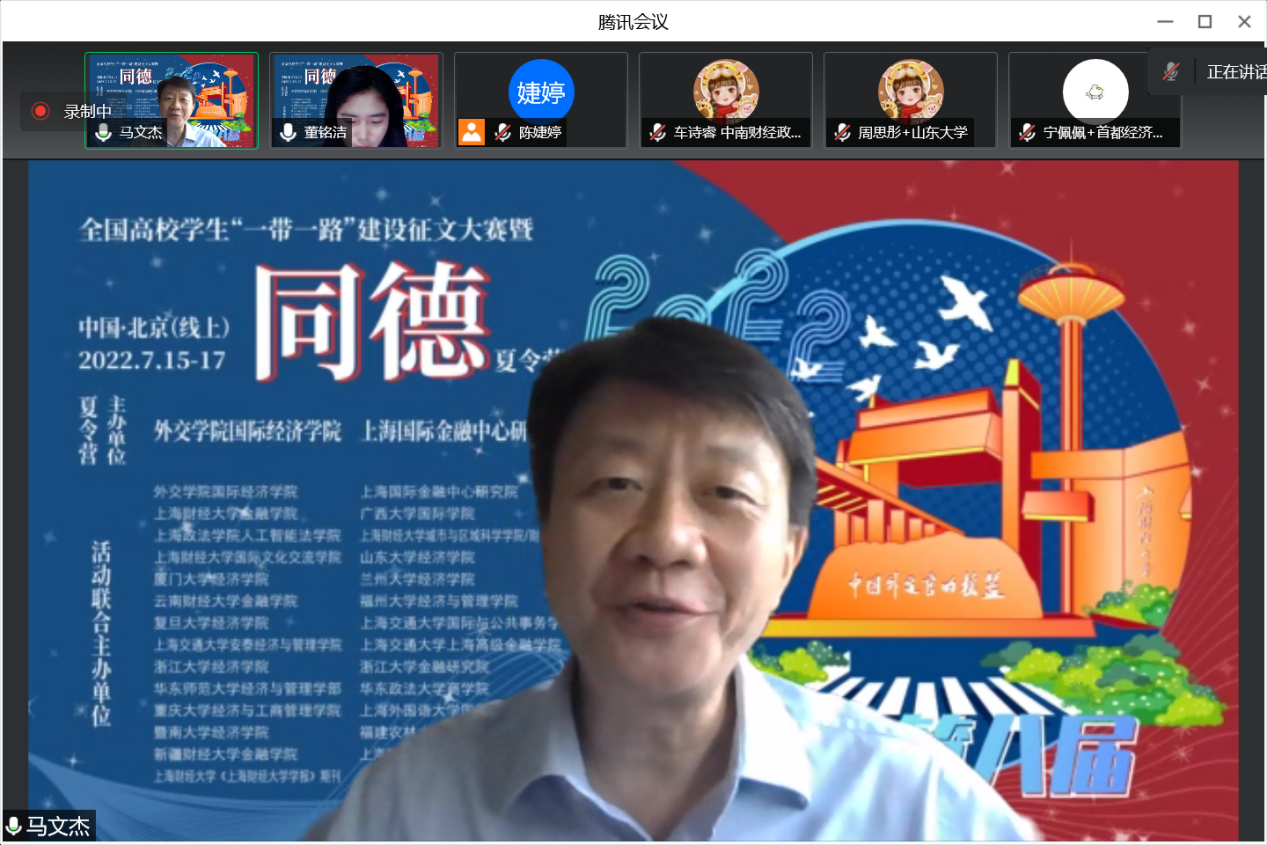 最后,外交学院国际经济学院张翠珍院长线上为获奖学生颁发获奖证书,参营学员和老师们一起线上合影留念。2022第八届全国高校学生“一带一路”建设征文大赛暨“同德夏令营”活动圆满落下帷幕。