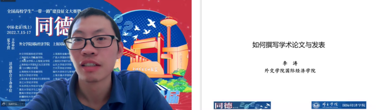 结营仪式结束后,欧明刚教授宣布正式进入2022第八届全国高校学生“一带一路”建设征文大赛颁奖典礼环节。2022第八届全国高校学生“一带一路”建设征文大赛暨“同德夏令营”活动从2022年1月份开始宣传征稿,共收到学生投稿论文450篇,其中研究生投稿论文82篇,本科生投稿论文368篇。本届征文大赛由各联合主办院校选派专家组成评审专家组,对经过资格审查的论文进行了两轮通讯评审,每一轮通讯评审每篇论文由两位专家共同评分,最后由评审专家组进行现场评审,最终决定获奖名单。