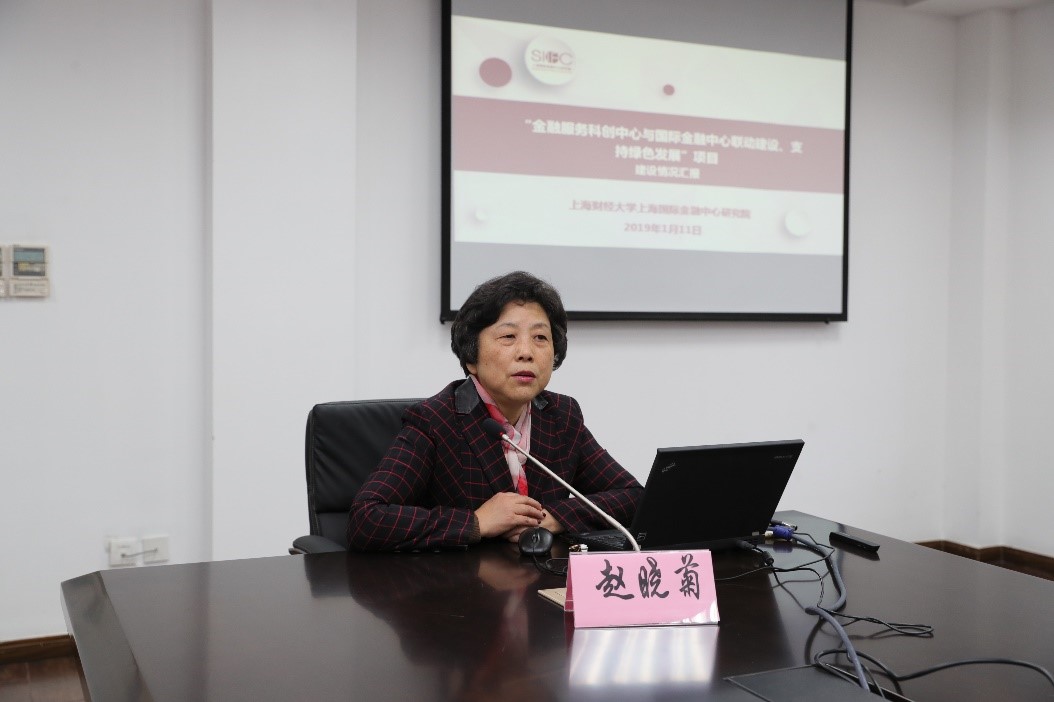 上海财经大学上海国际金融中心研究院院长赵晓菊教授汇报“金融服务科创中心与国际金融中心联动建设、支持绿色发展”项目建设情况