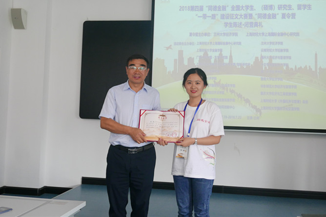 随后,兰州大学经济学院院长郭爱君教授为参营学员颁发结营证书,2018第四届“同德金融”夏令营圆满落下帷幕。