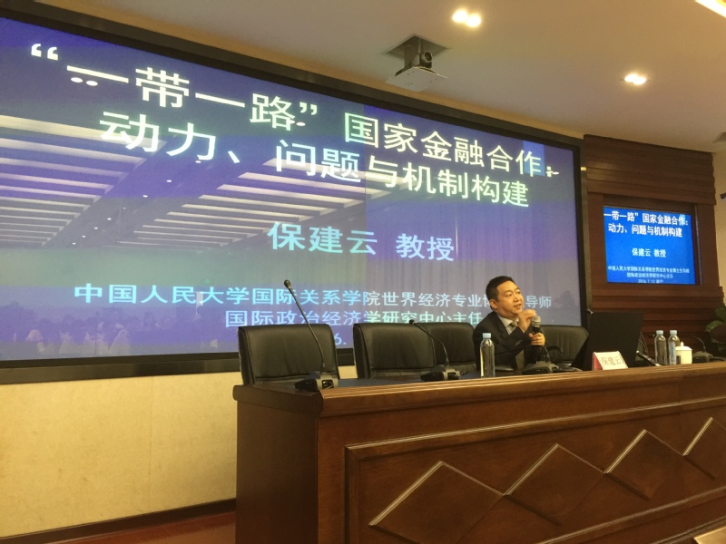 随后,中国人民大学国际关系学院国际政治经济学研究中心主任保建云教授为营员们带来主题为《“一带一路”国家金融合作:动力、问题与机制构建》的主题讲座。保健云教授从“一带一路”的提出背景、现实基础、主要内容、推动力量、面临挑战、策略选择六方面向参营学员介绍了“一带一路”国家重大战略,为参营学员们全面地展示了国家在制定重大战略过程中的在现状、政策等各方面的考量。