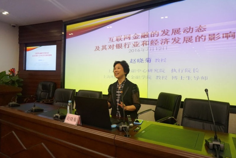 随后,上海财经大学上海国际金融中心研究院执行院长赵晓菊教授以《互联网金融的发展动态及其对银行业和经济发展的影响》为题为参营学员做主题讲座。赵晓菊教授从国际和国内视野两个维度,为参营学员详细分析了互联网金融的发展动态,以及在互联网金融高速发展的现状下银行业及经济发展面临的影响和挑战,运用国际与国内纵横交错的线条为学员们勾勒、绘制了互联网金融未来发展的美好途经。