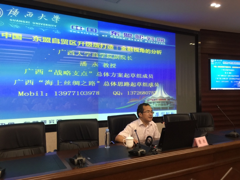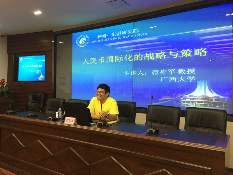 随后,广西大学中国-东盟研究院副院长范祚军教授以《人民币国际化的战略与策略》为题为学员们带来主题讲座。范祚军教授从人民币国际化战略的研究初衷、人民币国际化战略制定的理论基础及现实基础、人民币国际化战略制定的考量因素、人民币国际化的经典模式借鉴、人民币国际化战略制定的SWOT分析、人民币国际化战略的基本框架、人民币国际化战略的整体推进及区域布局暨人民币国际化战略的可行性十方面,为参营学员们详实地介绍了人民币国际化的进程思想与路径,为参营学员们展现了一副生动形象的人民币国际化发展进程的画卷。