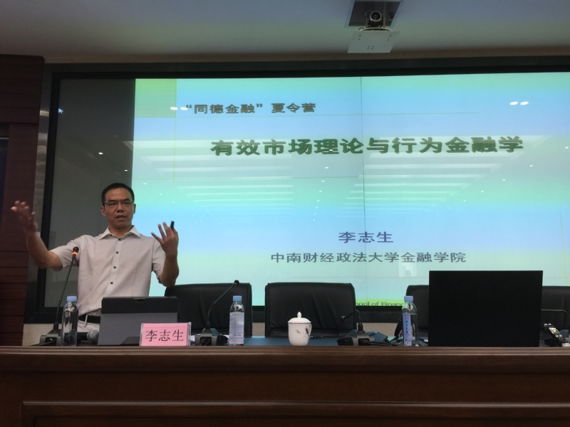 开营典礼结束后即进入专家主题讲座环节。上午场的专家主题讲座由广西大学中国-东盟研究院副院长申韬教授主持。中南财经政法大学金融学院副院长李志生教授为营员们带来主题为《有效市场理论与行为金融学》的主题讲座,以生动的例子、详实的数据为各位营员讲述了传统金融学到行为金融学的发展历程。