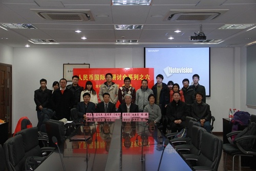 2012年12月22日,由上海国际金融中心研究院、上海财经大学现代研究中心主办,上海财经大学金融学院协办的人民币国际化研讨会系列六在我院召开。院长赵晓菊教授发表致辞,上海财经大学现代研究中心主任丁剑平教授主持研讨会。广西大学财政金融研究中心主任范祚军、中国社科院世界经济研究所原所长余永定在会议中发表了主题演讲。