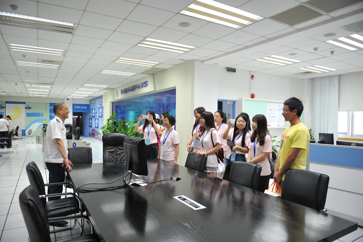洋山港海事局水上指挥中心郭锦春主任向参营同学详细介绍了海事局的日常运转过程