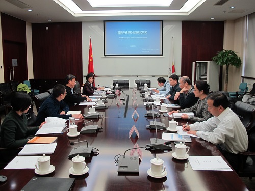 由国家开发银行研究院(金融研究发展中心)与上海国际金融中心研究院(上海财经大学)协同研究的项目——“开行债信模式研究”的评审会,于2013年12月1日下午2:00在国家开发银行总部(北京)召开。会上邀请了中央财经领导小组办公室 方星海司长、中国人民银行调查统计司 盛松成司长、国家开发银行专家委员会 汪子章常务副主任、国家开发银行资金局 于春玲局长、中国银行国际金融研究所 宗良副所长担任评审专家。开行研究院常务副院长郭濂、副院长邹力行、研究二处吴斌副处长、陈晓兰经理助理同时出席了本次评审会。