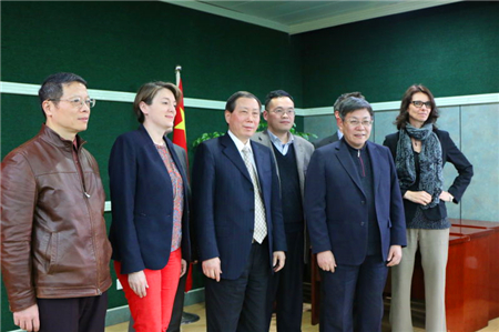 另外, 3月24日下午,法国BPCE银行集团访问团一行35人到我校自由贸易区研究院交流座谈。我院副院长丁剑平教授会见来宾一行。双方就上海自由贸易试验区建立的初衷和目的、自贸区现阶段的发展情况、自贸区的优势、自贸区对外资金融机构的相关政策等等进行了座谈。