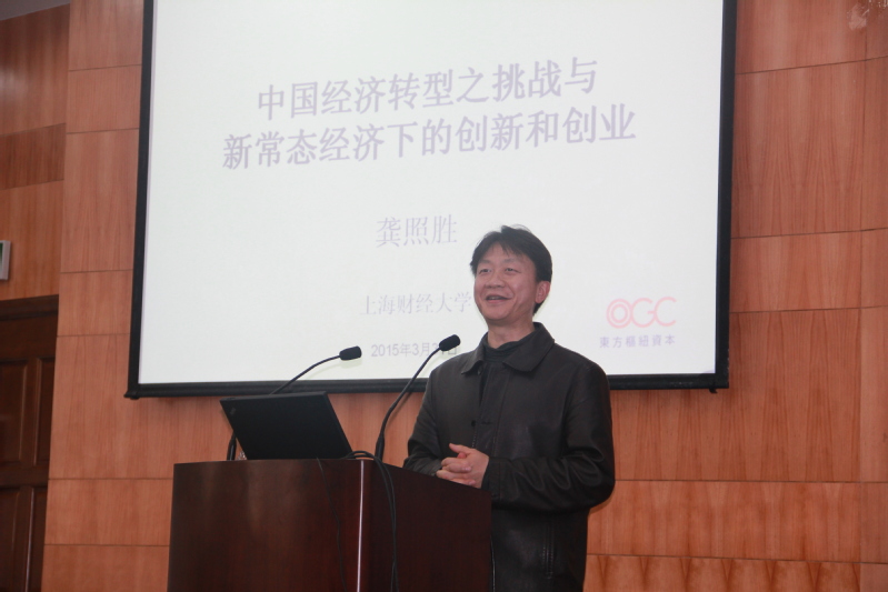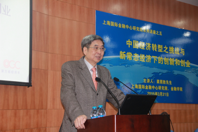 2015年3月31日下午,上海国际金融研究院顾问委员会成员、上海社科院兼职教授、前台湾金融监管委员会主席、白羊国际投资管理公司创办人暨董事长龚照胜先生应邀做客上海财经大学上海国际金融中心研究院,为师生带来题为“中国经济转型之挑战与新常态经济下的创新和创业”的精彩讲座。