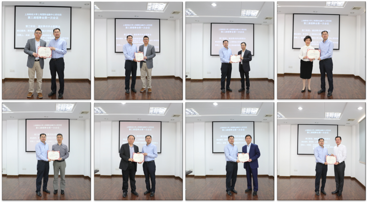2019年5月12日,上海国际金融中心研究院第三届理事会第一次会议在上海财经大学同德楼204会议室召开。研究院理事会成员:上海市档案局巡视员肖林;上海财经大学校长蒋传海教授;原上海金融学院校长王洪卫教授;上海国际金融中心研究院院长赵晓菊教授;中国工商银行上海市分行党委书记、行长顾国明;先锋领航集团亚洲区总裁、先锋领航投资管理(上海)有限公司董事长林晓东、浙商银行金融资产交易中心董事长赵暖、史带财产保险股份有限公司董事长张兴出席了本次理事会,上海市政府参事、上海社科院经济研究所原所长石良平教授、中国银行上海分行行长赵蓉女士因另有重要工作不能参加理事会,提前请假。