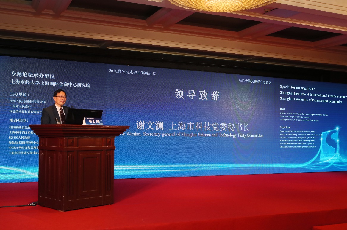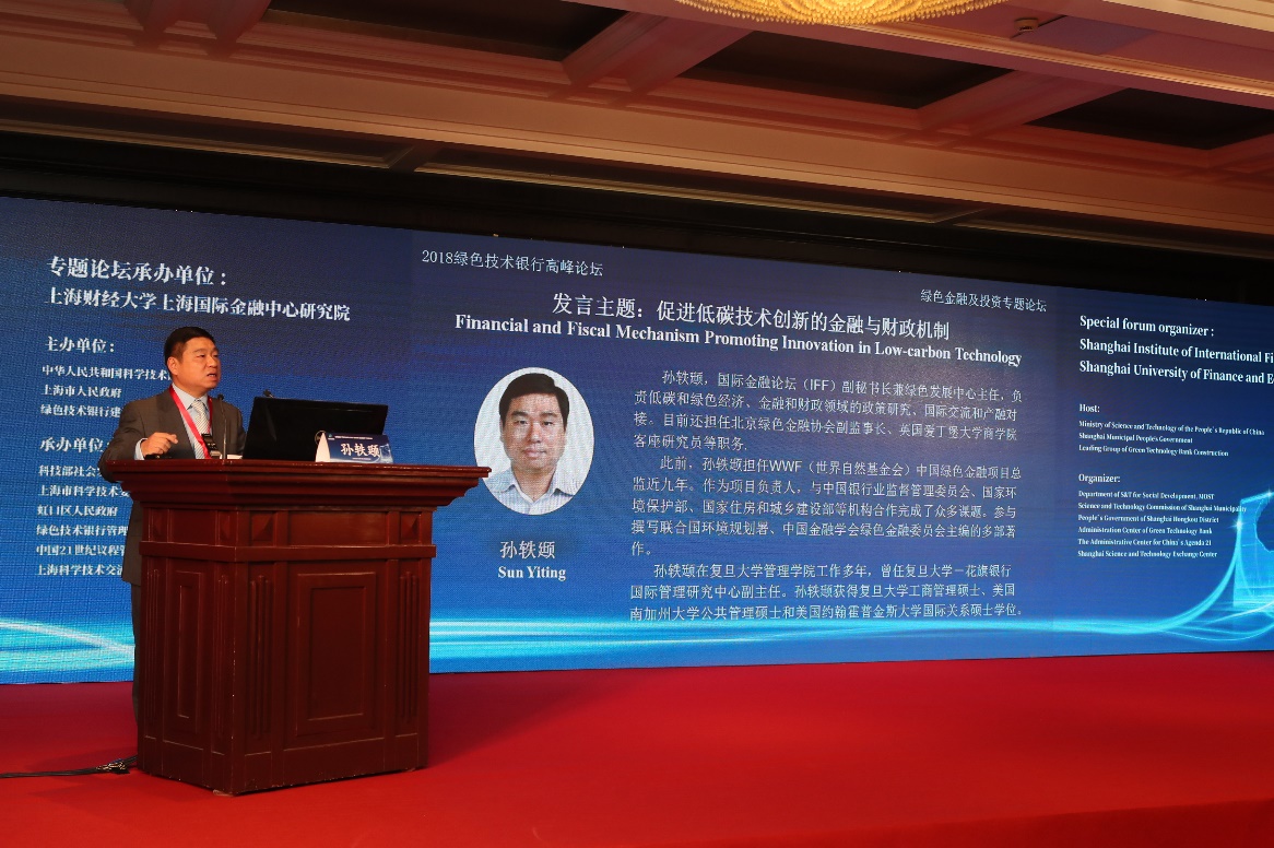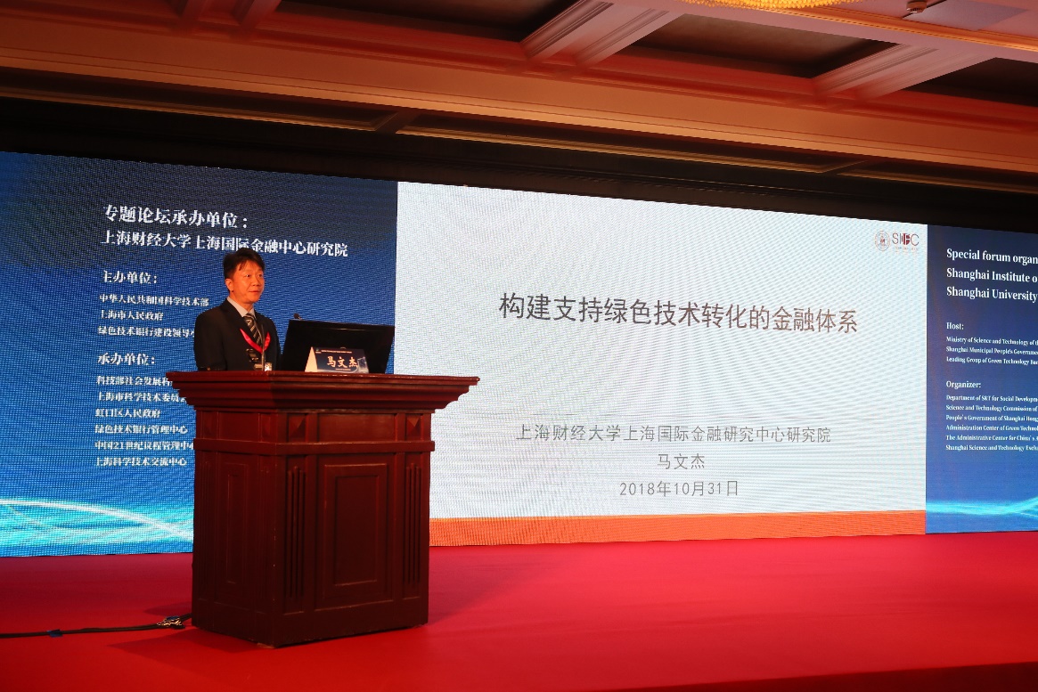 2018年10月31日,由上海财经大学上海国际金融中心研究院承办的“首届绿色技术银行高峰论坛之绿色金融及投资论坛”在上海外滩浦华大酒店隆重召开。本次论坛旨在探讨如何构建与绿色技术的研发、孵化、转移转化等各阶段的风险特征及社会经济效益相适应的全链条绿色金融服务体系,提高金融对绿色技术应用的服务水平。