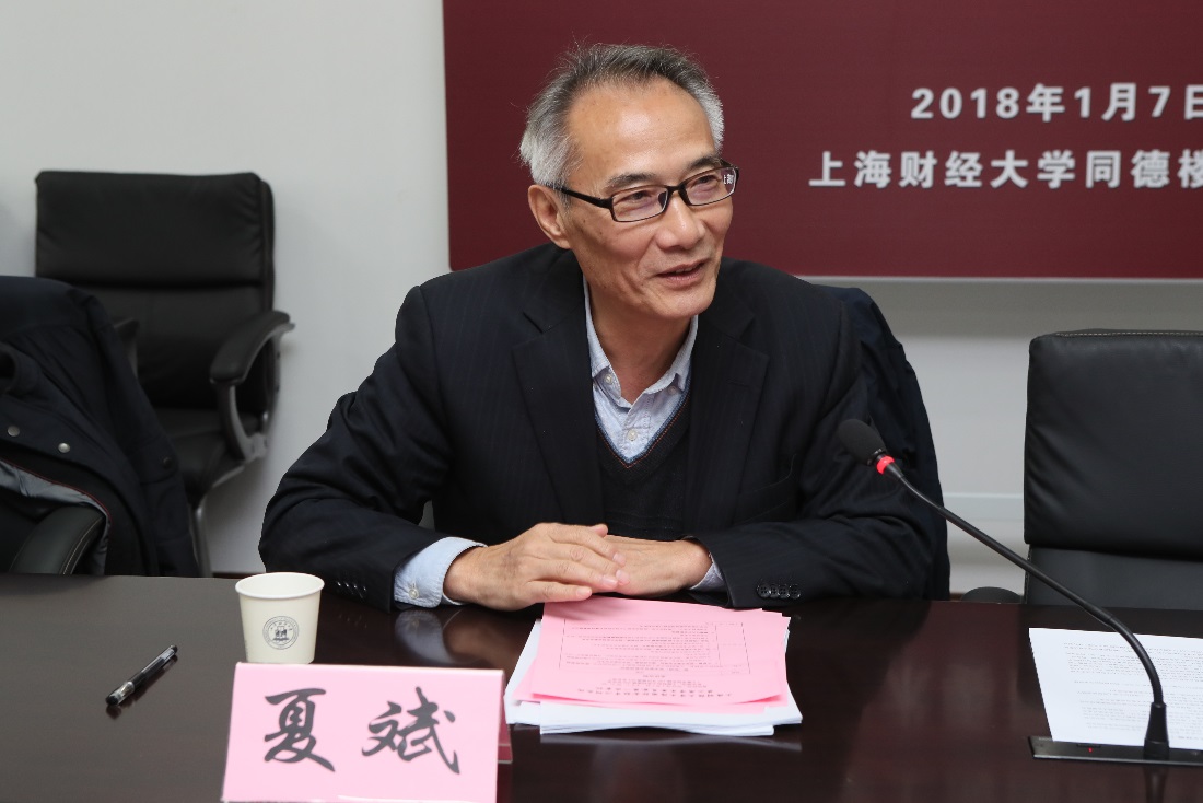 2018年1月7日,上海财经大学上海国际金融中心研究院第二届学术委员第一次会议在上海财经大学同德楼204会议室召开。国务院参事、国务院发展研究中心金融研究所名誉所长、上海财经大学上海国际金融中心研究院特聘首席专家夏斌出席本次会议并做重要讲话。参加本次会议的学术委员有:上海财经大学校长、上海财经大学上海国际金融中心研究院院长蒋传海、上海市金融服务办公室主任、上海市金融工作委员会书记郑杨、上海市人民政府发展研究中心副主任周国平、上海市人民政府发展研究中心综合处处长周效门、上海财经大学上海国际金融中心研究院执行院长赵晓菊、上海自贸区研究协调中心秘书长、上海社科院教授徐明棋、上海财经大学金融学院党委书记刘莉亚、文汇报社党委副书记、全国网络文化标准化技术委员会委员谢海光、中德安联人寿保险有限公司CEO陈良、上海环境能源交易所董事长林辉、中国银行上海分行副行长黄雪军、原上海银行副行长、原全国城商行清算中心理事长王世豪、上海银监局政策法规处处长马强、上海市金融服务办公室市场处副处长曹艳文、天云融创数据科技(北京)有限公司CEO雷涛、上海期货交易所大宗商品服务部总监鲍建平、上海财经大学法学院副院长宋晓燕、上海财经大学上海国际金融中心研究院副院长丁剑平、复旦大学金融研究院教授陈学彬、上海社会科学院法学研究所研究员王海峰、高朋(上海)律师事务所主任、高级合伙人谢向阳。同时出席本次会议的还有:上海财经大学上海国际金融中心研究院副院长谈儒勇、上海财经大学上海国际金融中心研究院金融实验室副主任闵敏。